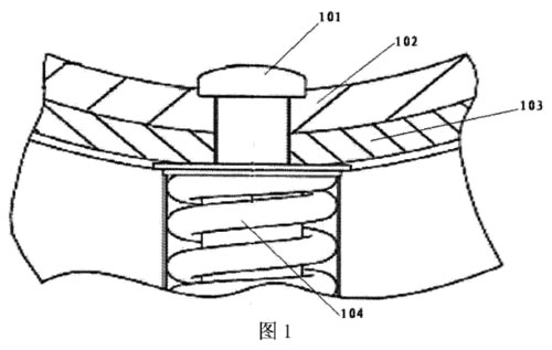 電磁流量計是一種根據(jù)法拉第電磁感應定律來測量測量管內(nèi)導電介質(zhì)體積流量的感應式儀表。電磁流量計中設置有電極,電極具有電極頭。圖1為現(xiàn)有的電磁流量計的部分結(jié)構的截面圖。如圖1所示,電磁流量計中布置有內(nèi)襯102、測量管的管壁103、用于支撐電極的支撐彈簧104以及電極的電極頭101,等等。在圖1中,電極的電極頭101以裸露的方式布置。