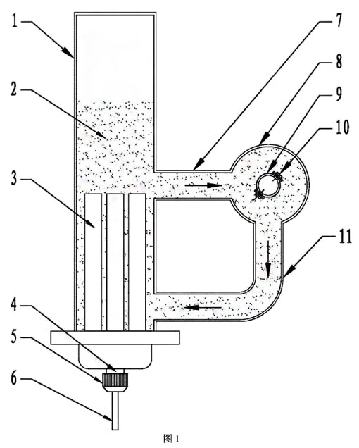 電磁流量計的脫蠟裝置通過法蘭固定在管道內(nèi)。含蠟石油與水的混合物流過上述管道,PTC陶瓷加熱器3通電后釋放熱能,使位于PTC陶瓷加熱器3附近的導(dǎo)熱介質(zhì)2溫度升高,這部分溫度升高的導(dǎo)熱介質(zhì)2與位于箱體1上部的未被加熱的導(dǎo)熱介質(zhì)2發(fā)生熱交換,位于箱體1出口的導(dǎo)熱介質(zhì)2向上流動,經(jīng)**介質(zhì)通道7進入吸熱器8,使吸熱器8的外壁溫度升高在45℃左右,使粘附在吸熱器8外壁的石蠟涂覆層脫離。同時設(shè)置在吸熱器8內(nèi)的測量導(dǎo)管9外壁和電極10的溫度也隨之升高,使得位于導(dǎo)管9內(nèi)壁及電極10極掌面的溫度也被加熱到45℃左右,使粘附在導(dǎo)管9內(nèi)壁及電極10的石蠟涂覆層脫離。經(jīng)過熱傳遞后,吸熱器8內(nèi)的導(dǎo)熱介質(zhì)溫度降低。而位于第二介質(zhì)通道11內(nèi)的導(dǎo)熱介質(zhì)被PTC陶瓷加熱器3加熱后,溫度升高,與吸熱器8內(nèi)的導(dǎo)熱介質(zhì)形成溫差,使得位于吸熱器8內(nèi)的導(dǎo)熱介質(zhì)向第二介質(zhì)通道11流動。如此反復(fù)。這種導(dǎo)熱介質(zhì)的“微循環(huán)流動”采用了流體動力學(xué)的原理,替代了利用導(dǎo)熱循環(huán)泵使導(dǎo)熱介質(zhì)循環(huán)運動的現(xiàn)有技術(shù)。由于整個系統(tǒng)不必通過導(dǎo)熱循環(huán)泵來進行,節(jié)約了成本,同時還使得結(jié)構(gòu)更為簡單、保證了整個裝置的安全性和穩(wěn)定性。