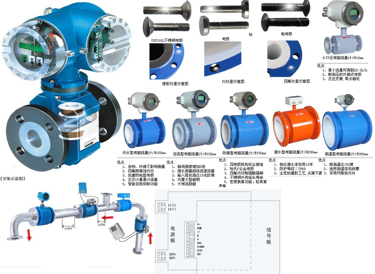 電磁流量計的測量通道是一段無阻流檢測件的光滑直管,因不易阻塞適用于測量含有固體顆粒或纖維的液固二相流體,如紙漿、煤水漿、礦漿、泥漿和污水等。不產生因檢測流量所形成的壓力損失,儀表的阻力僅是同一長度管道的沿程阻力,節能效果顯著,對于要求低阻力損失的大管徑供水管道*為適合。所測得的體積流量,實際上不受流體密度、粘度、溫度、壓力和電導率(只要在某閾值以上)變化明顯的影響,與其他大部分流量儀表相比,前置直管段要求較低。測量范圍度大,通常為20:1~50:1, 污水流量計可選流量范圍寬。滿度值液體流速可在0.5~10m/s內選定。有些型號儀表可在現場根據需要擴大和縮小流量(例如設有4位數電位器設定儀表常數)不必取下作離線實流標定。電磁流量計不能測量電導率很低信號現象: