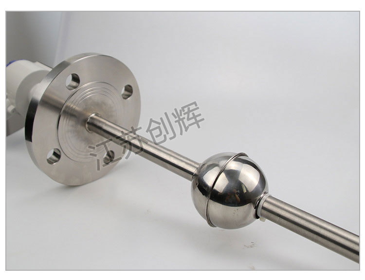 CH-UQZ磁性浮球液位計由磁浮球、傳感器、變送器三部分組成。當磁浮球隨液位變化,沿導管而上下浮動,浮球內的磁鋼吸合傳感器內相應位置上的干簧管,使傳感器的總電阻(或電壓)發生變化,再由變送器將變化后的電阻(或電壓)信號轉換成4~20mA的電流信號輸出。并可在顯示儀上設定上、下限報警,實現對液位的位式控制。