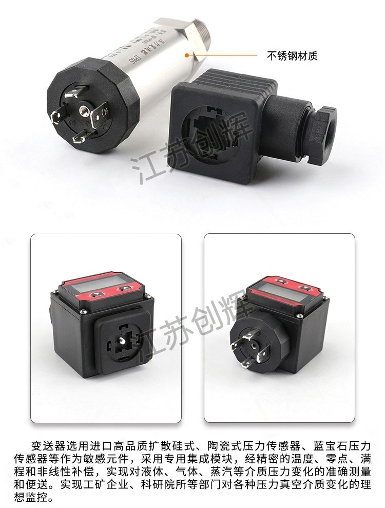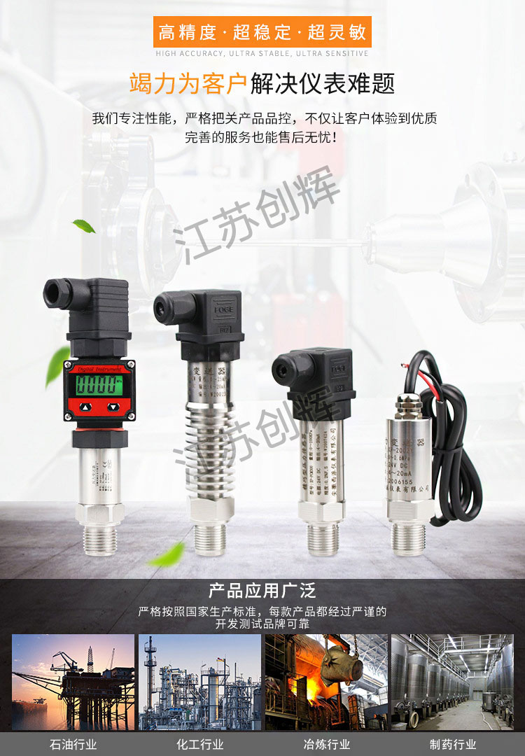 應用于水廠、煉油廠、污水處理廠、建材、輕工、機械等工業領域,實現對液體、氣體、蒸氣壓力的測量。