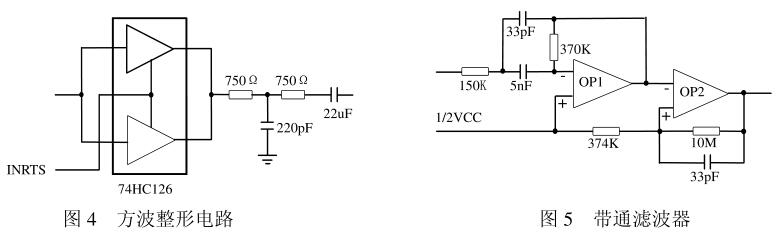 HART MODEM采用Smar公司的HT2012,它是符合Bell202通訊標(biāo)準(zhǔn)的半雙工調(diào)制解調(diào)器,實現(xiàn)HART協(xié)議規(guī)定的數(shù)字通訊的編碼和譯碼,采用16腳DIP和28腳PLCC封裝附屬電路主要實現(xiàn)信號的濾波整形,由帶通濾波器和方波整形電路組成(見圖4和圖5)。